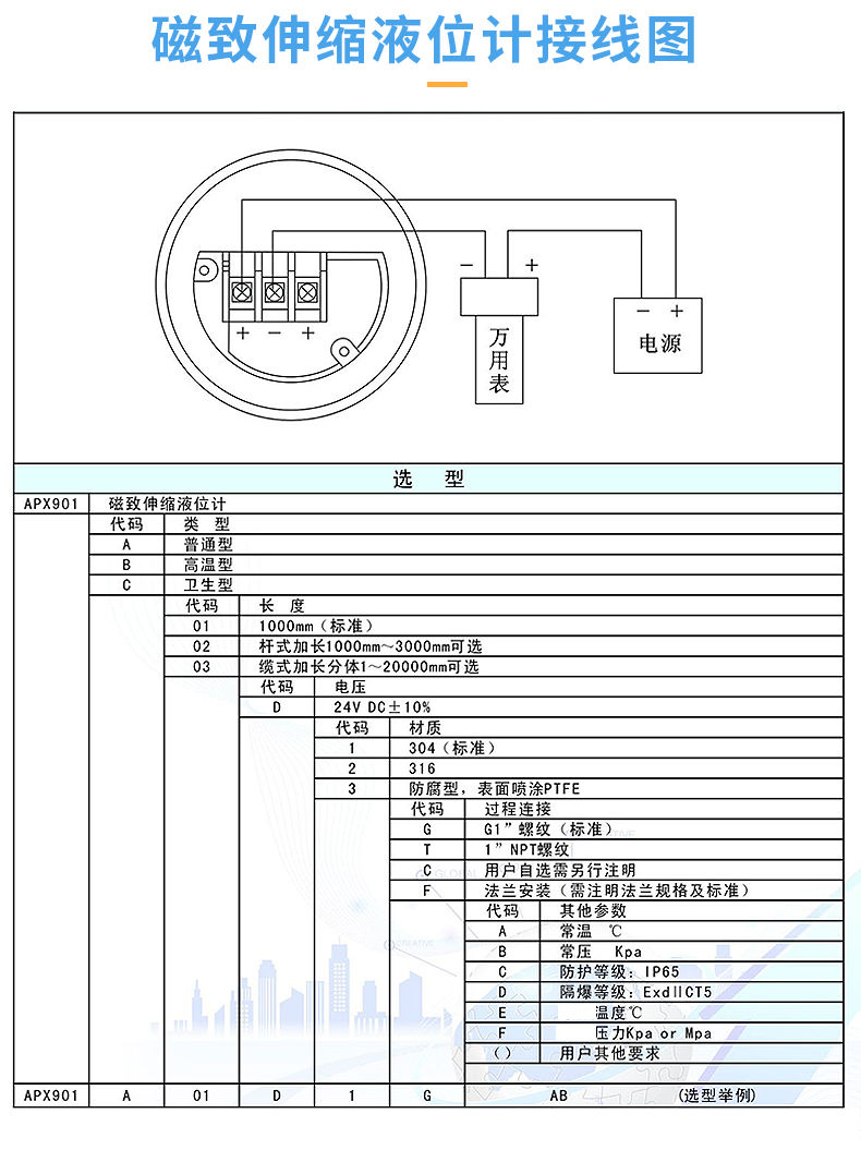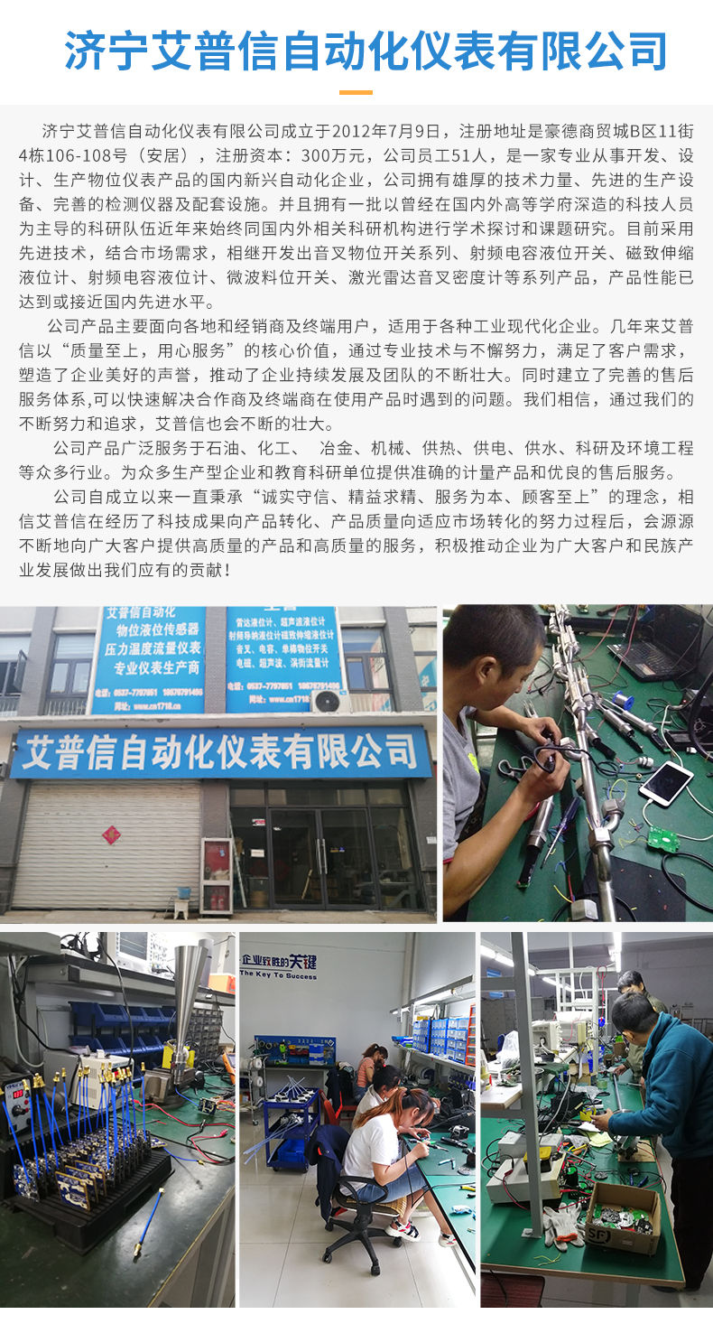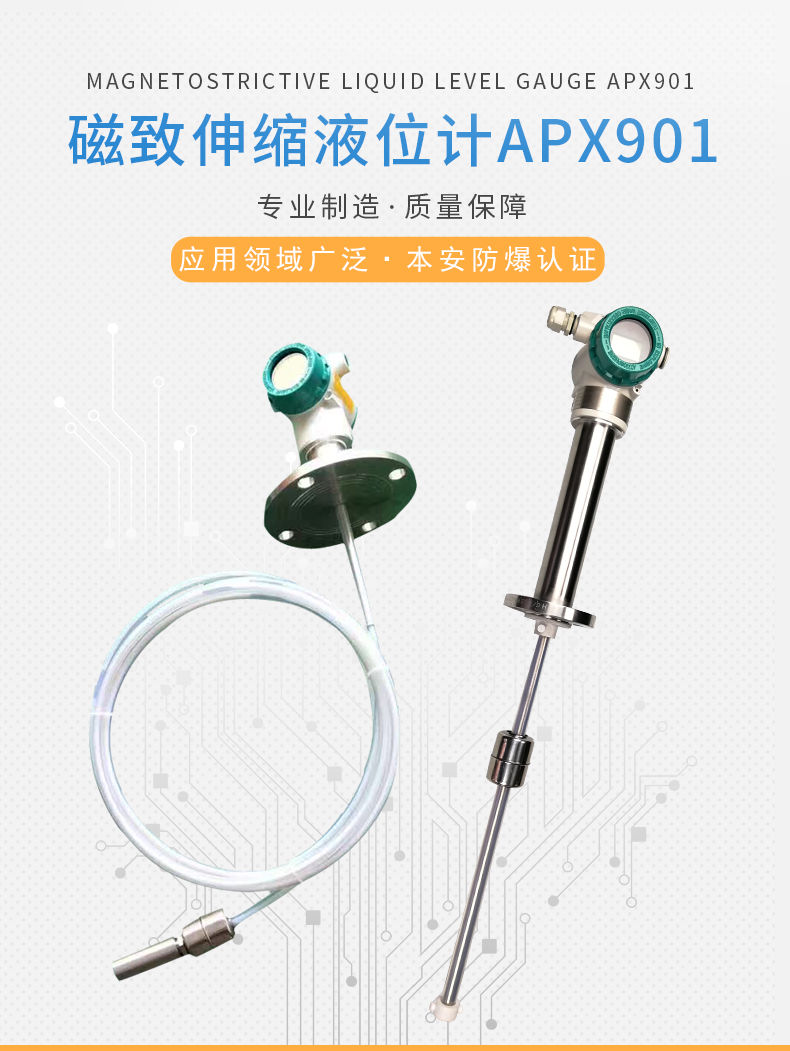 濟(jì)寧艾普信自動(dòng)化儀表有限公司自主研發(fā)的高精度APX901磁致伸縮液位計(jì),滿足了各個(gè)工況現(xiàn)場(chǎng)的需求,隨著科學(xué)技術(shù)的迅猛發(fā)展,高新技術(shù)在各行業(yè)中得到了廣泛的應(yīng)用,高科技含量的APX901磁致伸縮液位傳感器,應(yīng)用于各類儲(chǔ)罐的液位測(cè)量。該種液位計(jì)具有高精度、環(huán)境適應(yīng)性、穩(wěn)定性、可靠強(qiáng)、安裝方便等特點(diǎn)。因此,廣泛應(yīng)用于石油、化工等液位測(cè)量領(lǐng)域,并逐漸取代了其它傳統(tǒng)的傳感器,成為液位測(cè)量中的精品。