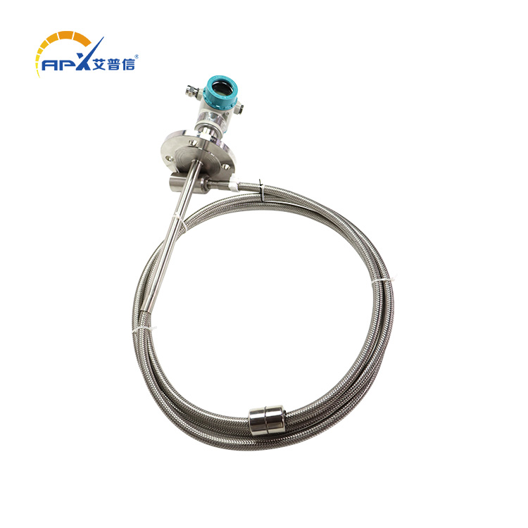 傳感器工作時,電路部分將在波導絲上激勵出脈沖電流,該電流沿波導絲傳播時會在波導絲的周圍產(chǎn)生脈沖電磁場。在傳感器測桿外配有一浮子,此浮子可沿測桿隨液位的變化而上下移動。在浮子內(nèi)部有一組永久磁環(huán)。當脈沖電流磁場與浮子產(chǎn)生的磁環(huán)磁場相遇時,浮子周圍的磁場發(fā)生改變從而使得由磁致伸縮材料做成的波導絲在浮子所在的位置產(chǎn)生一個扭轉波脈沖,這個脈沖以固定的速度沿波導絲傳回并由檢出機構檢出。通過測量脈沖電流與扭轉波的時間差可以精確地確定浮子所在的位置,即液面的位置。